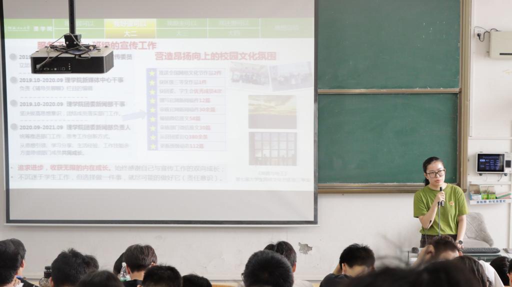 为充分发挥优秀学子的榜样激励作用,引导理学院广大学子增强自强不息、勤奋学习意识,在校园内形成良好的学习氛围,6月6日,理学院在04109教室举办“我是国奖生”优秀事迹宣讲会。资助专项负责老师马亚博、扬帆社工作人员,近二百名学生参与活动。