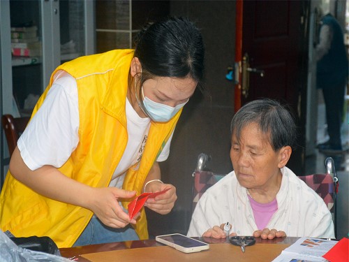 活动中,志愿者为老人们送去水果、牛奶等慰问品,表演了红色诗歌朗诵《献给中国》,与老人们一起进行绘画、书法、剪纸折花等形式多样的活动,并亲切地与老人们聊天谈心,询问他们的身体状况、生活情况,希望他们注意身体,保持积极乐观的心态。老人们也被志愿者的热心、爱心所感染,脸上洋溢着幸福的笑容。