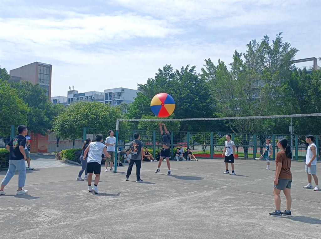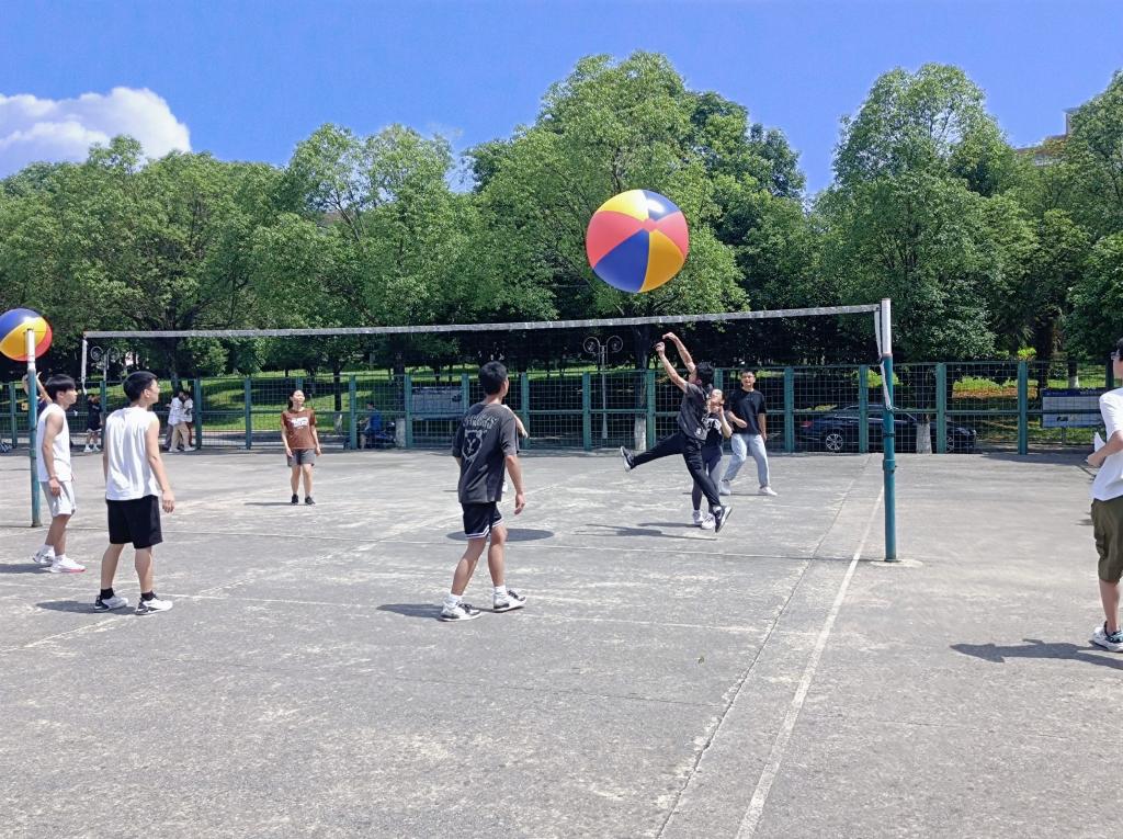 自带搞笑基因的巨型排球,谁能不爱呢?一出现便引来同学们极大的兴趣,同学们你拍我打、顶着巨型气排球,动作挥洒自如,仿佛身在“小人国”,充满了欢乐。在比赛中,同学们朝气蓬勃、热情十足,各自施展排球绝技,一个个精彩的拦网,完成了一个又一个完美的配合,现场充满了欢乐的氛围。在吆喝声、拍打声、欢笑声中,呈现了一场又一场洋溢着青春、热血的精彩比赛,展示着同学们精彩的竞技风采。大家以球会友、以球联谊,在缓解学习和生活压力的同时,还更好地为同学们搭建良好的运动锻炼平台。