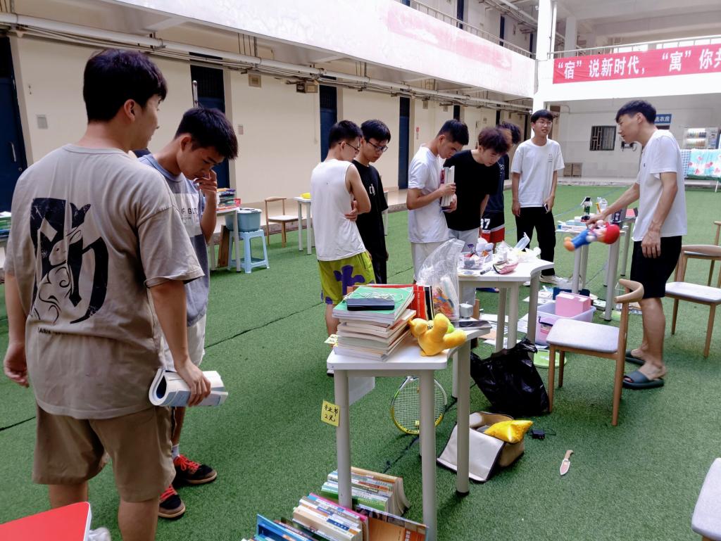 六月栀子的盛开,时光的快门键悄然按响定格在张扬而又热烈的青春里。伴随着夏日的热浪,跳蚤市场和毕业季一同到达。依托“一站式”学生社区大地之子社区红色驿站为学生“办实事、传温度”的功能,为学生搭起沟通交流、互惠互利的平台,让毕业生“轻装”告别,让低年级学生“淘宝取经”。在跳蚤市场上,离校的学子们将带不走的闲置物品,如写满笔记的专业书、没有用完的生活用品、体育锻炼器械、学习桌等零零散散的物品摆放在小摊上,等待有缘人将它带回“新家”。每一个摊位前都挤满了前来寻宝的同学,同学们挑选着心仪的商品,个个都收获了满满的“战利品”,满载而归。这是一场关于青春记忆的转售活动,虽然物品是旧的,但快乐是新的。这里的每件旧物都有自己的故事,我们光顾的,也是他们的青春。