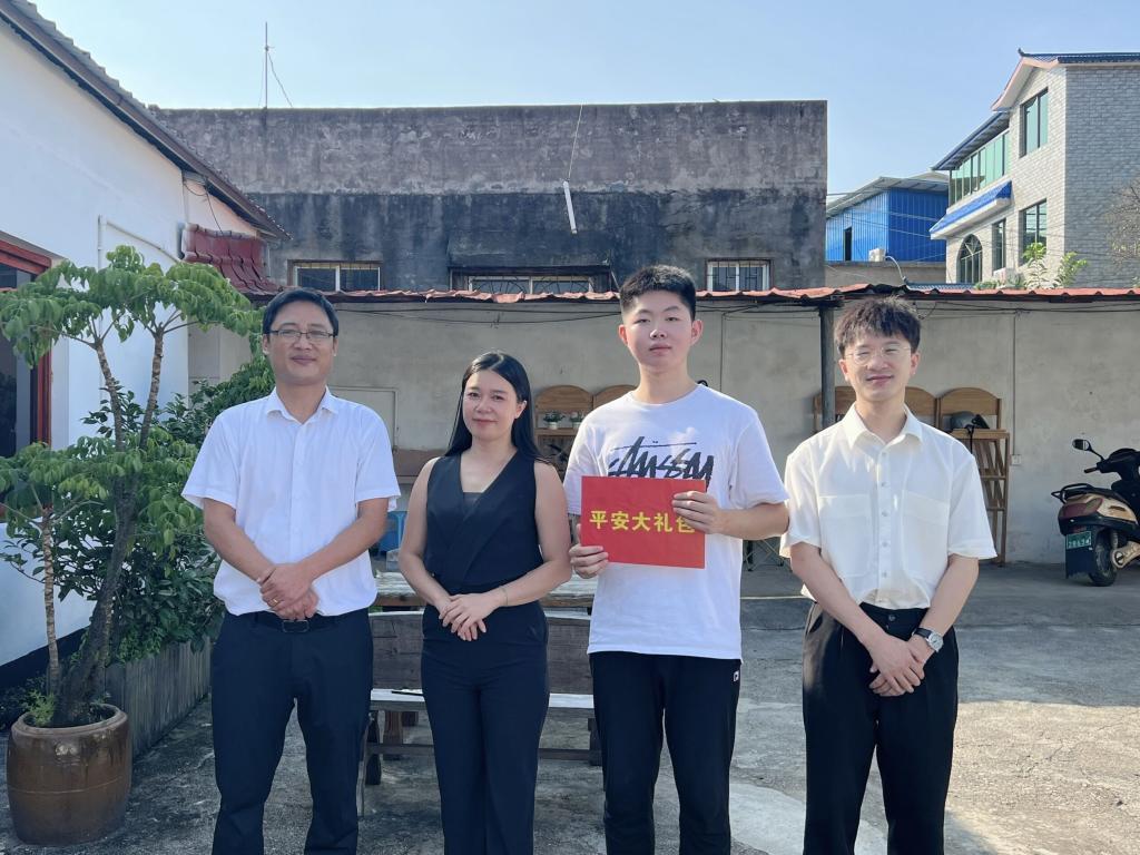 学院党委副书记李少华带队前往2023级新生黄同学家中,对他和家人表达了关心和问候。“家里现在情况怎么样?生活上有什么困难?对大学生活有什么规划?”,李少华与学生、家长亲切交谈,询问了学生假期在家的情况,了解了学生的成长环境,并嘱咐学生珍惜学习机会,合理做好学业生涯规划,提升综合实践能力。辅导员梁精华则向学生及家长传达了国家资助政策,简要介绍了学校奖助学金资助体系。新生辅导员朱皓结合开学注意事项,提醒家长和孩子务必树立安全意识,谨防诈骗。同时,希望家长们继续做好孩子的安全监督工作,共同关注孩子的心理健康,从而帮助孩子顺利适应大学生活。