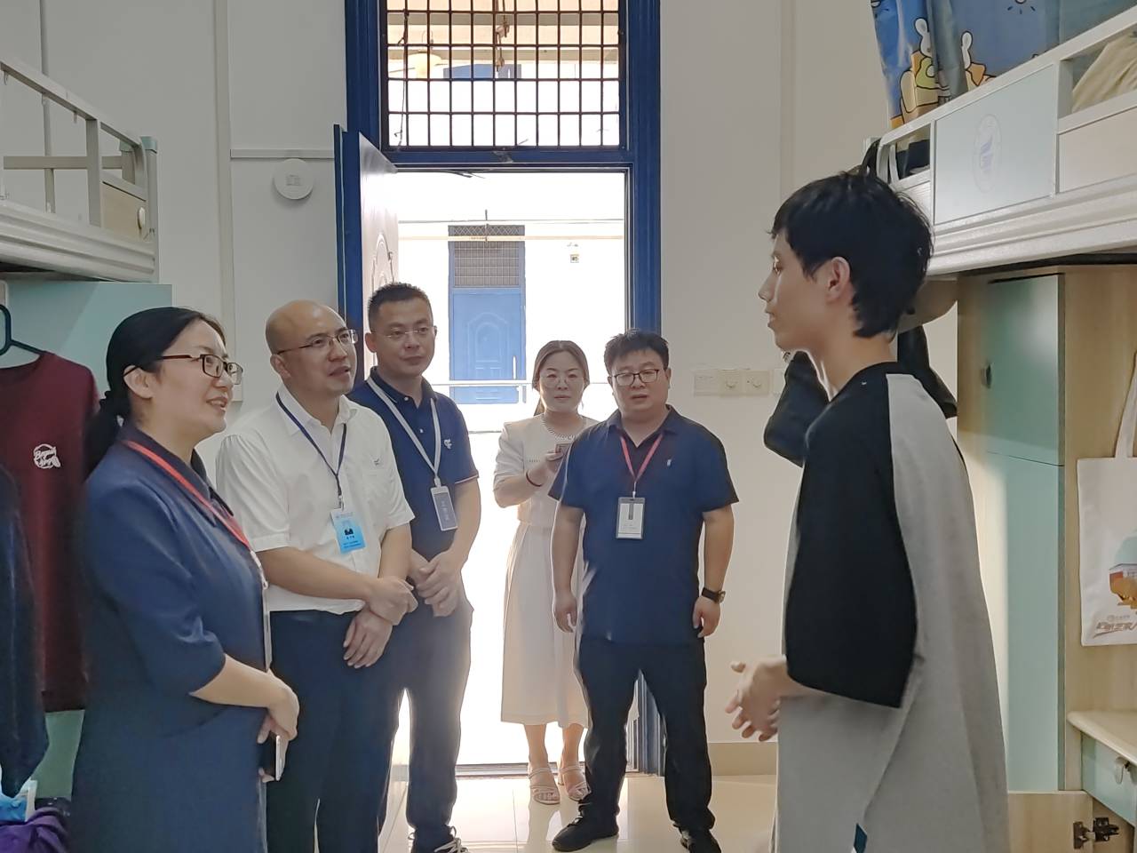 9月10日下午,学院党委书记白凌婷、院长李本建、党委副书记苑守瑞、副院长符晗、院长助理黄建标一行到宿舍看望2023级新生。