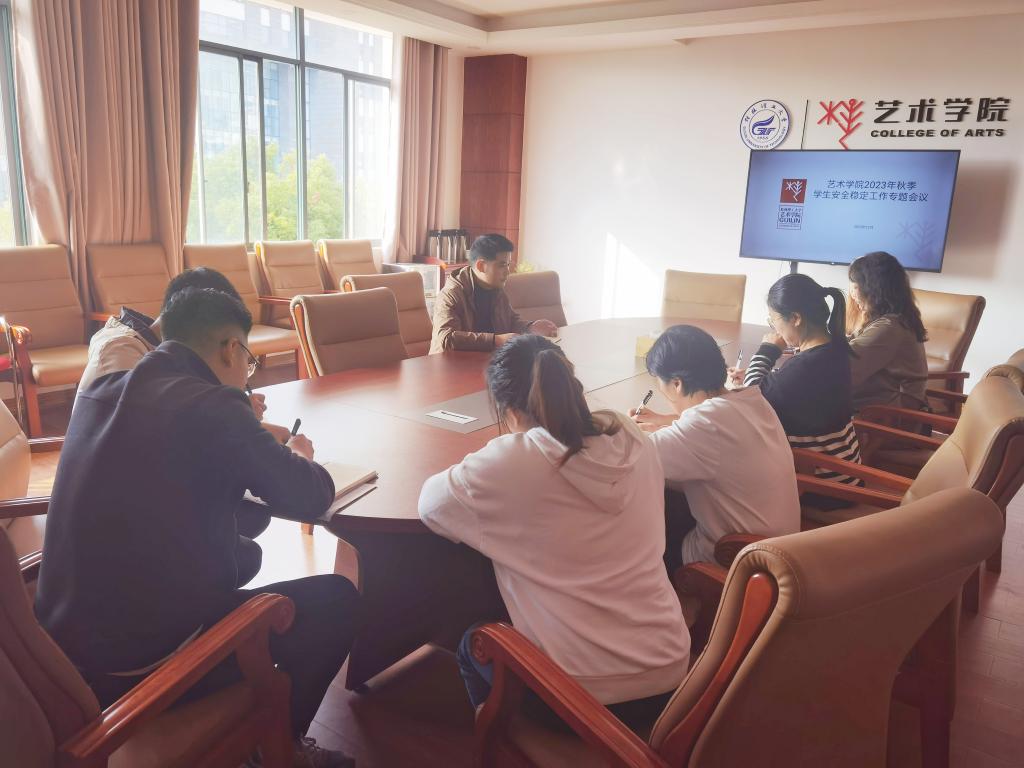 12月11日,艺术学院在雁山校区博雅楼324会议室召开2023年秋季学期学生安全稳定工作专题会。会议由学院党委副书记黄传伟主持,全体专兼职辅导员参加会议。
