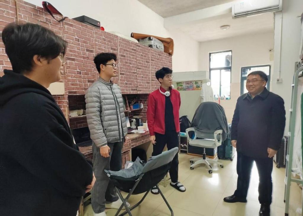 龙年始风华,万象启新朝。为了解新学期学生返校后的思想状况、学习与生活情况,深入开展学生返校安全教育工作,推进学院学生工作走深走实。2024年3月3日中午,学院院长张烈平、党委副书记王迎波、学院副院长代宣军、吴东、于雁南及各年级辅导员深入学生宿舍走访交流,为同学们送上新学期的关心和问候。