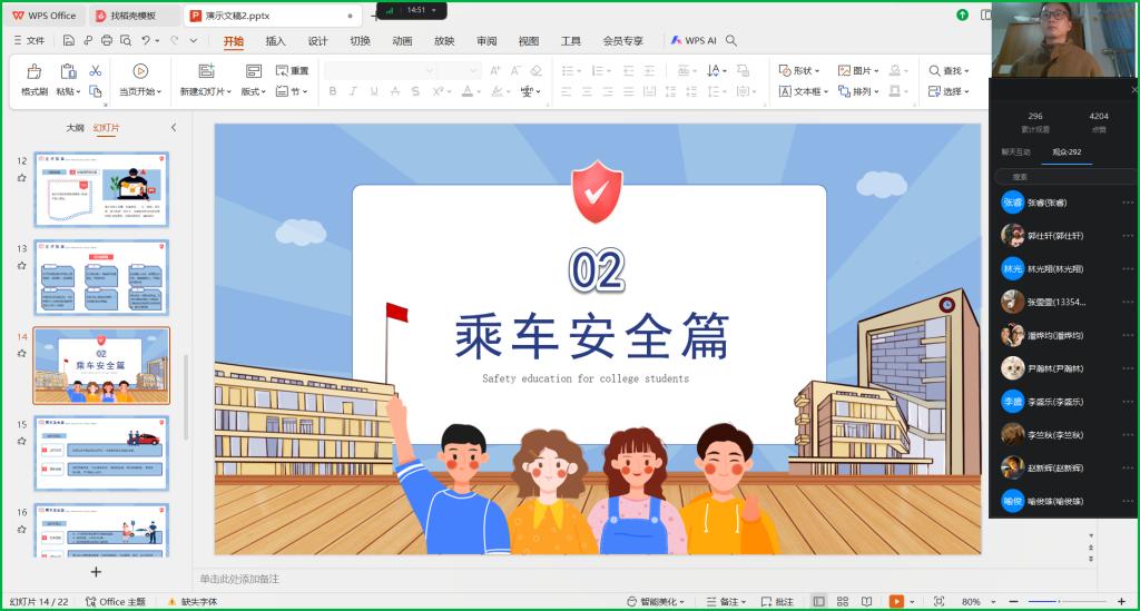 此次安全教育线上会议的顺利开展,不仅增强了同学们的安全意识,也为新学期的顺利开始奠定了坚实基础。令人愉快的寒假结束了,同学们将要陆陆续续的返校,但应要牢记交通法规,保护自身财产安全,到校遵守校规,这样才能在新的学期中继续为了梦想和学业努力。