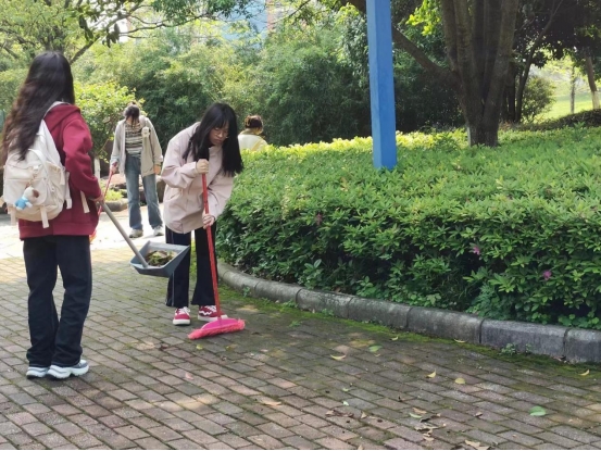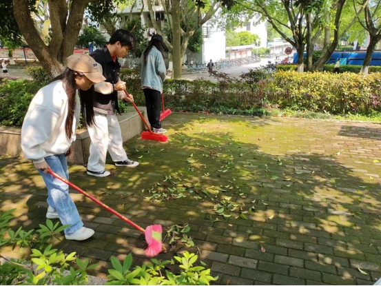 活动过程中,学生以学校博雅楼为中心,清扫道路上的落叶和垃圾,擦拭公共设施,清理绿化带中的杂草和杂物,清理草坪杂草。经过学生的辛勤劳动,清洁区域焕然一新。