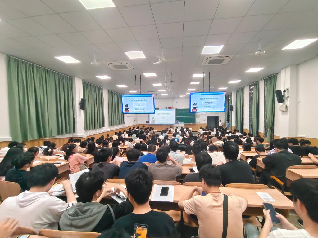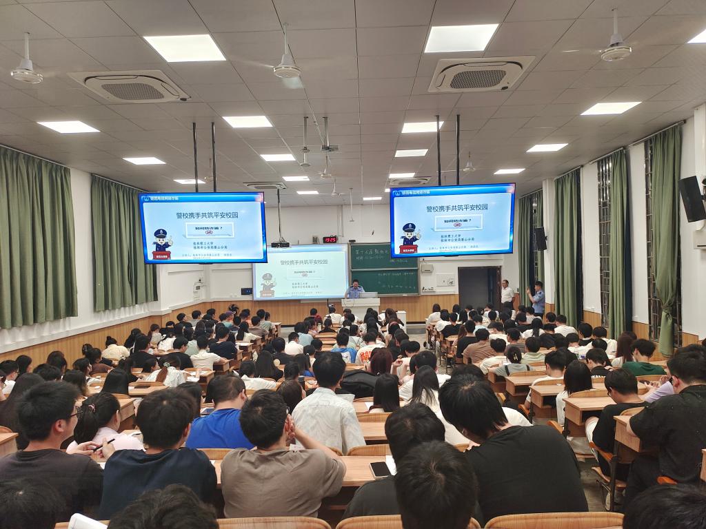为了深入推进校园法制教育,切实提高学生的法律素养和自我保护能力。化学生物与工程学院于5月12日在雁山校区06206教室、萃华楼报告厅举行了校园法治教育宣讲会。宣讲会邀请到桂林市公安局雁山分局派出所政工负责人赵俍杰主讲,学院400余名学生参加宣讲会。