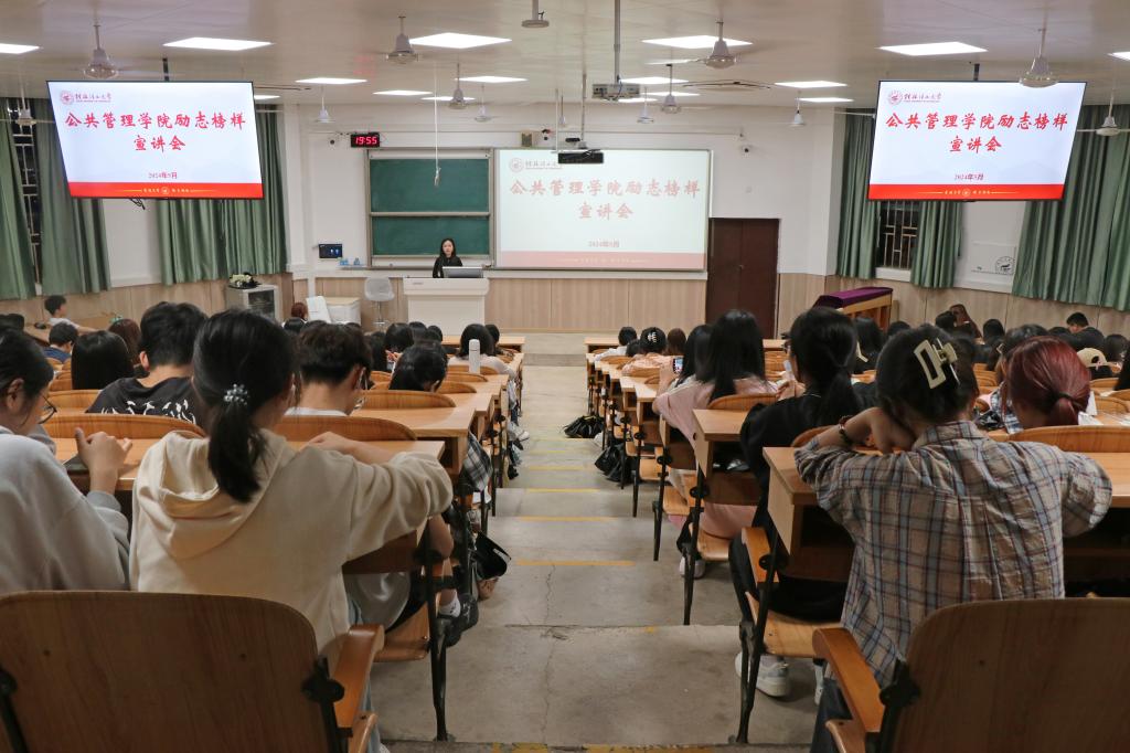 为进一步激发大学生学习动力,充分汲取榜样先锋的宝贵经验,坚定理想信念,5月19日,公共管理学院分别于雁山校区07518、07519教室开展了“励志榜样宣讲”活动,学院各年级辅导员及全体同学参加此次活动。