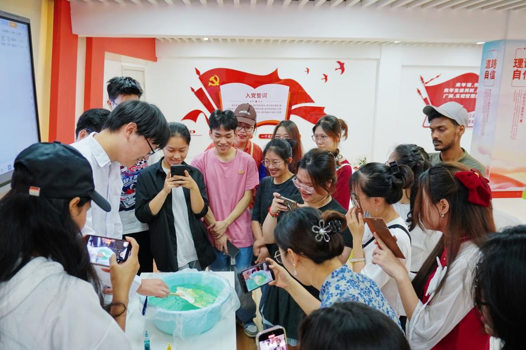 为深入学习贯彻习近平文化思想,深入贯彻落实党的二十大精神,全面贯彻落实“强国复兴有我”群众性主题宣传教育活动相关要求,扎实推动中华优秀传统文化的传承发展和国际交流。2024年7月6日上午,材料科学与工程学院“中国历代绘画大系”古绘宣讲团在屏风校区材苑“一站式”思政大讲堂举办“感受非遗魅力”文化体验交流活动,材料科学与工程学院、国教育学院师生代表参加活动。