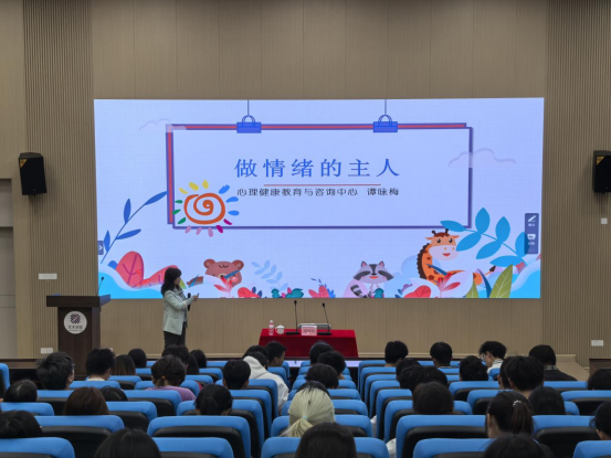 为帮助同学们学会调节情绪、缓解压力,以积极的心态面对学习和生活挑战,10月28日下午,艺术学院以“艺”年好景君须记——“艺”家人音体美美育体验周特色心理活动为依托,在雁山校区博雅讲堂成功举办了桂工讲坛1823讲“做情绪的主人”专题讲座。本次讲座特别邀请了学校心理健康教育与咨询中心副教授谭咏梅担任主讲嘉宾,包含艺术学院受奖助学生在内的全校200余名学生参加。