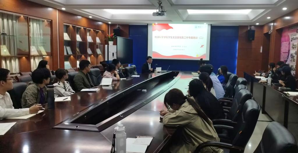 10月28日,地球科学学院在01215会议室开展第二期学生党支部党务工作培训会。学院组织员宁乃向、各学生党支部支委、学生党务中心负责人参加培训会,会议由宁乃向主持。