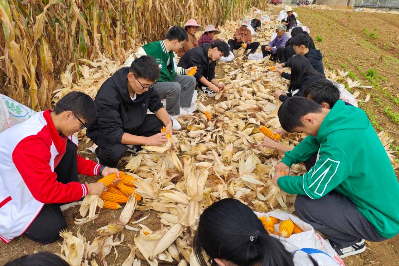 在基地老师的悉心指导下,学生们首先学习了收割玉米的基本技巧及劳动安全规范。在简要教学过后,学生们迫不及待地踏入玉米田,满怀激情地投入到收获玉米的劳作中。在充满希望的田野上,同学们满怀热忱,伴随着“咔嚓”“咔嚓”的清脆声响,一穗穗饱满的玉米棒子被学生们小心翼翼地掰下。随后,大家耐心地给玉米脱去“外衣”,清理“胡须”,其间不时地相互交流着技巧和心得,兴奋地展示着自己的劳动成果,惊喜与乐趣在这片玉米地里蔓延。学生们纷纷感慨于劳动人民的艰辛与粮食的珍贵,深刻体会到了劳动带来的快乐与收获的满足。
