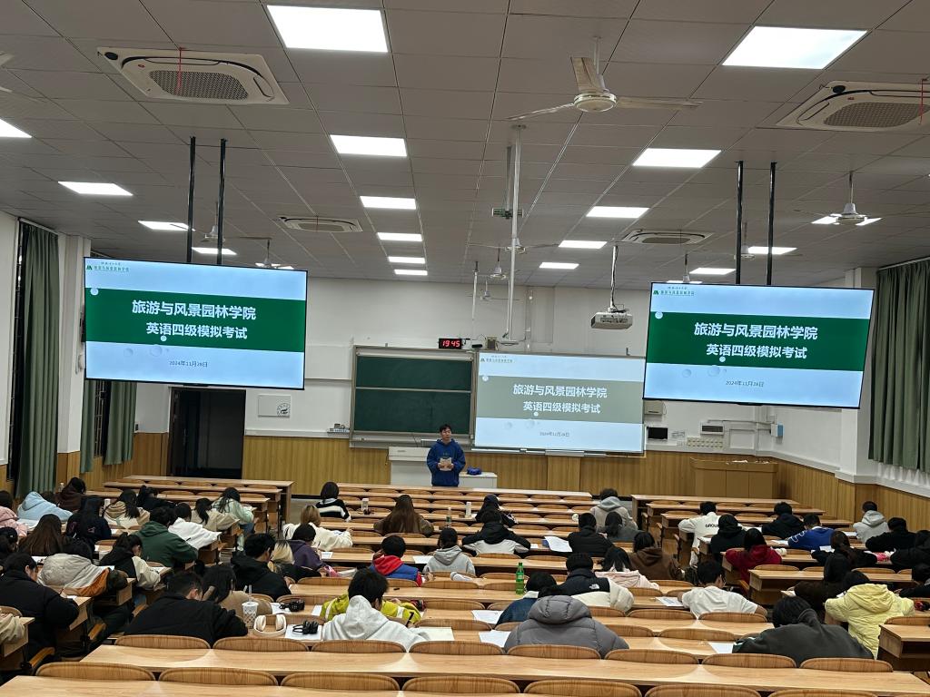 为加强学风建设,帮助同学们熟悉英语四级考试流程与题型,提升应试技巧和信心,11月28日晚,旅游与风景园林学院成功组织了一场英语四级模拟考试,2024级全体大一学生均参与了此次模拟考试。
