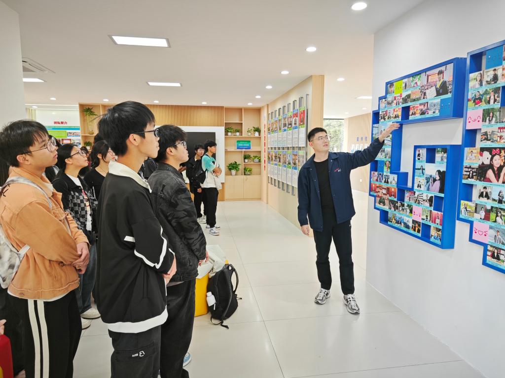 学生资助宣传大使为学生介绍学校资助育人实践基地