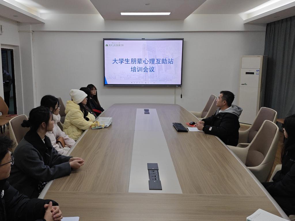为加强学生的安全意识,推进朋辈心理互助队伍建设,提高朋辈心理互助员为同学们服务的意识和能力,9月12日旅游与风景园林学院在雁山校区04509会议室召开朋辈心理互助员培训会。会议由辅导员吴桂源老师主讲,学院朋辈心理互助工作站全体成员到场参加。