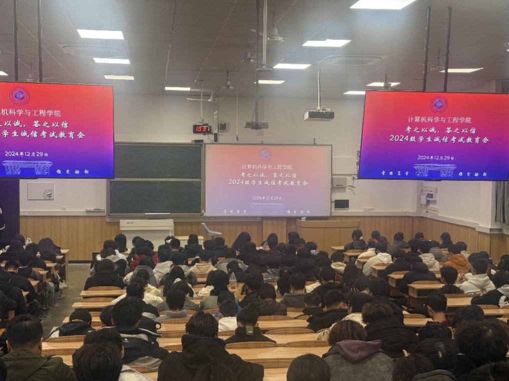 为强化考风考纪建设,营造公平公正、诚实守信的考试环境,计算机学院于12月29日在成长成才课上召开了2024级学生期末诚信考试教育会,教育会由辅导员劳家宝主持,全体2024级学生参加。