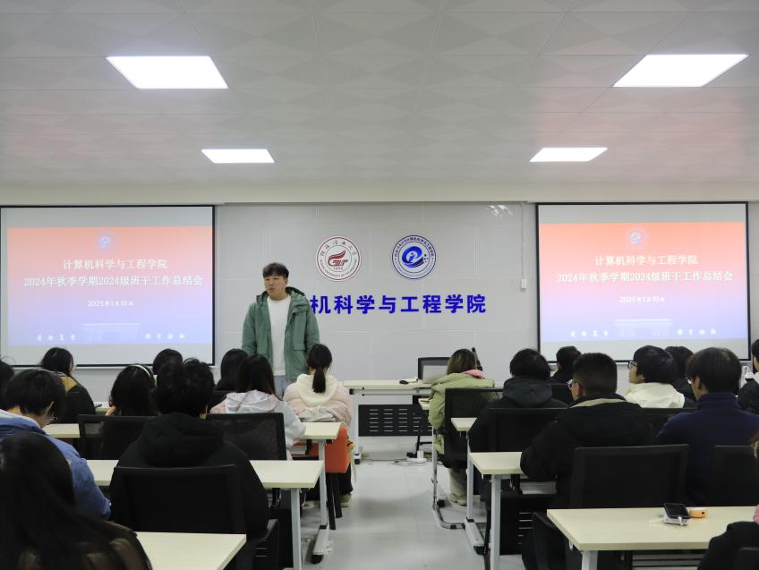 为加强班团骨干队伍建设,总结班级学生工作经验,增强学生干部自我教育、自我管理、自我服务、自我监督意识,1月10日,计算机科学与工程学院在02525举行了2024-2025学年秋季学期2024级学生干部学期工作总结会。本次会议由辅导员劳家宝主持,学工组长孟德和2024级全体学生干部参加会议。