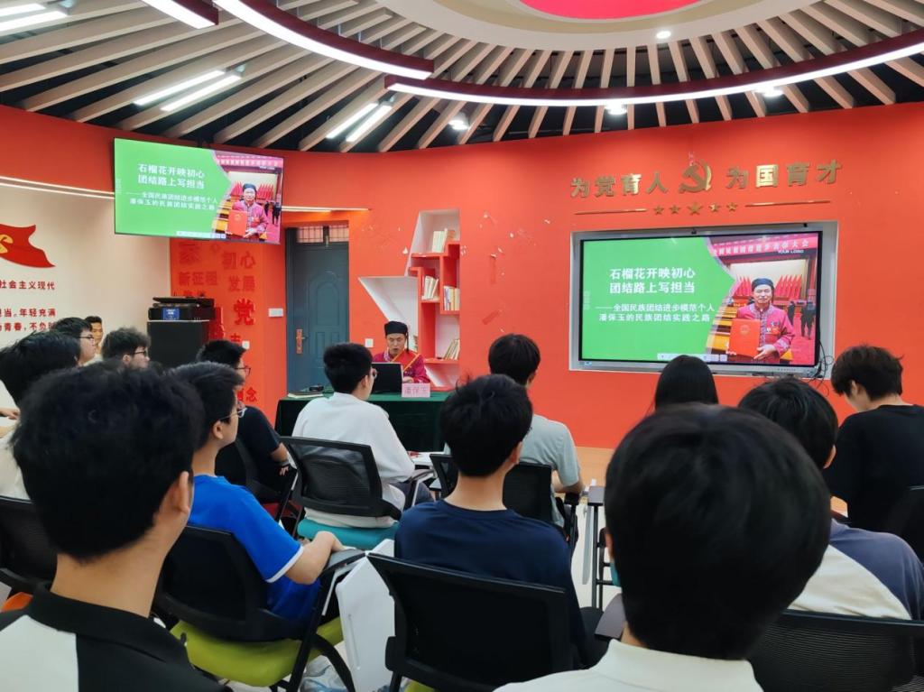 会上,潘保玉书记结合自身经历,从探索乡村发展路径、带领村民脱贫致富、传承民族文化以及投身家乡公益等多个方面出发,讲述了其在民族团结进步事业中的生动实践与显著成就。同学们纷纷表示,从潘保玉的事迹中深刻理解了铸牢中华民族共同体意识的重要意义,感受到了民族团结凝聚的强大力量,也更加明确了自己在新时代民族团结进步事业中的责任与担当。