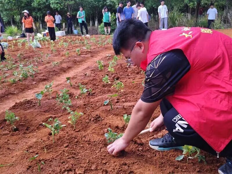 为深入贯彻落实劳动教育要求,着力提升受助学生劳动素养,2025年5月9日,地球科学学院自强社组织二十余名受助学生走进百草耕读园,开展了一场充满意义的农作物种植实践活动。此次种植的农作物包括红薯、芋头、辣椒等,在后勤老师的悉心指导下,同学们用实际行动体验劳动的乐趣与艰辛,以躬身实践诠释劳动教育的深刻内涵。