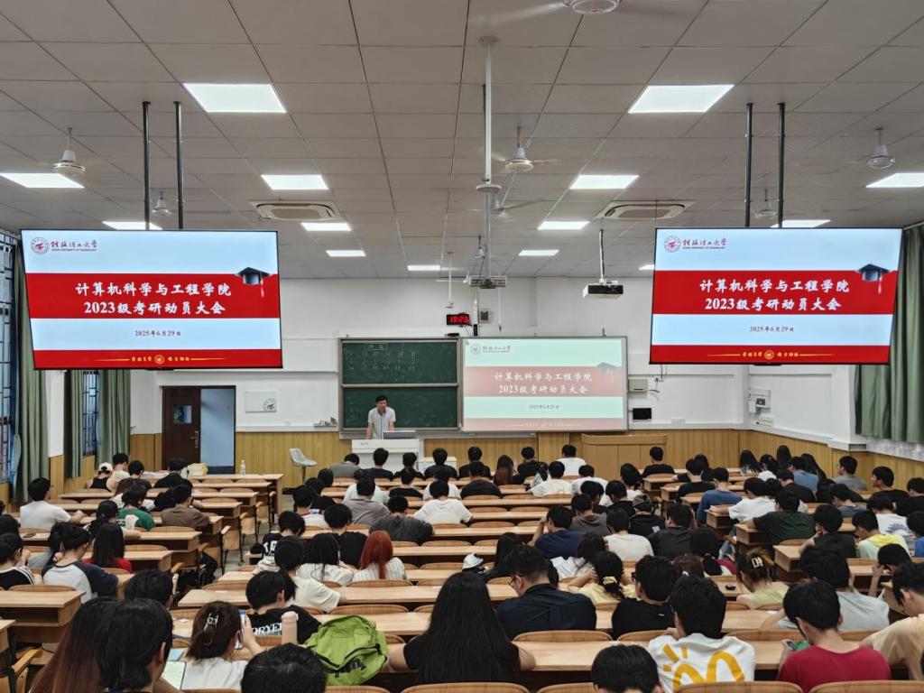 为帮助学生进一步认清当前考研与就业形势,科学规划未来发展方向,激发考研热情、掌握考研技巧。2025年6月29日,计算机科学与工程学院于06509召开2023级考研动员大会。学院党委副书记黎超业、学生工作办公室全体辅导员和2023级全体学生参加会议。会议由兼职辅导员申英龙主持。