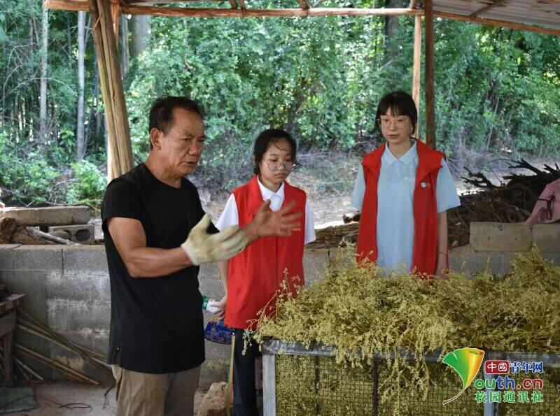 昊野金槐种植专业合作社负责人为实践团讲解金槐“杀青”流程的相关知识