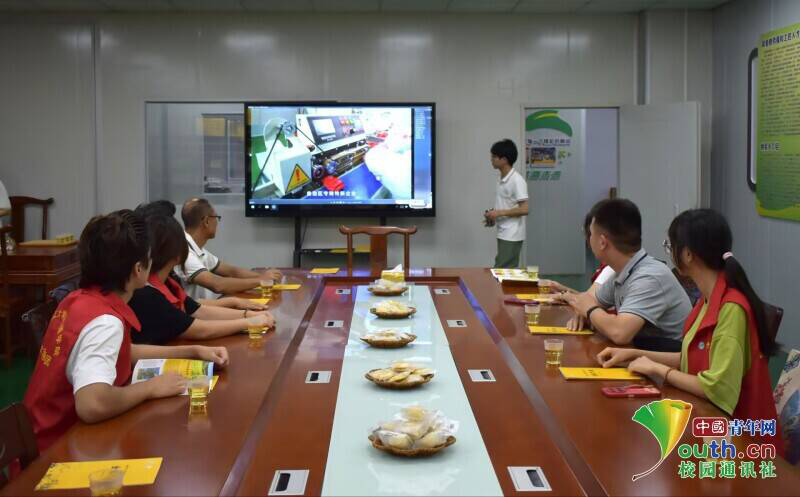 实践团成员在会议室观看与金槐有关的宣传片
