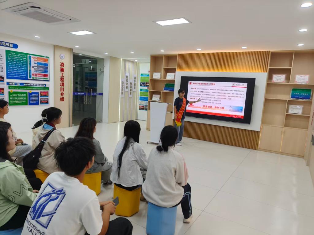 活动伊始,学校资助宣传大使以“奖、助、贷、勤、补、免、其他”七个方面资助政策帮助2025级家庭困难学生全面了解我校的资助体系,包括助学金、奖学金、国家助学贷款等资助项目的申请流程、条件和注意事项,同时结合我校“凌雁工程”发展型资助育人示范项目,向同学们介绍了“领头雁”计划—勤工助学学生骨干能力提升计划、“雁阳”计划—朋辈互助阳光成长计划、“助飞”计划—师辈教育协同帮扶计划、“芳华”计划—女大学生能力提升计划等等项目,生动形象的向同学们展示了我校资助育人校本模式,使同学们深切感受到学校、相关职能部门、二级学院和学生团队共同发力的多方协同育人新样态,感受到我校资助育人贯穿融入学生入学前、在校时和毕业后的全过程。