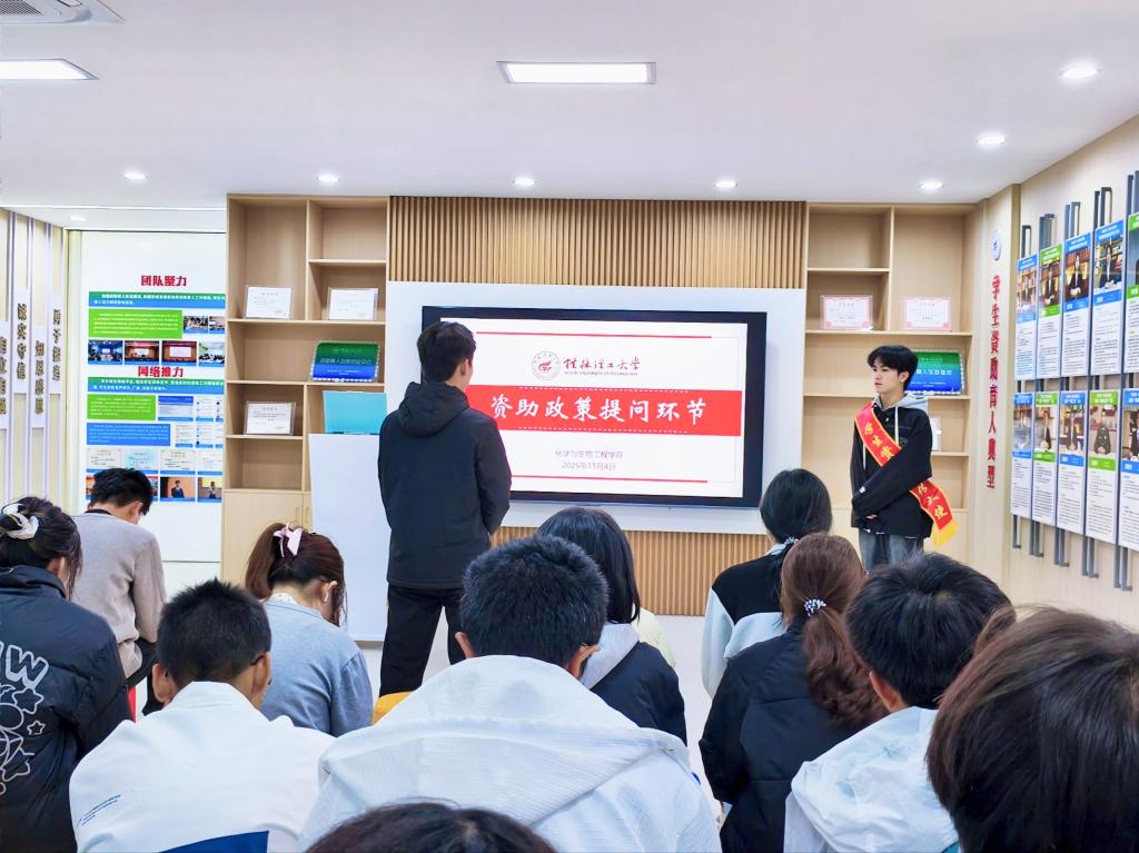 为加强国家及学校资助政策的宣传力度,确保广大学生全面了解资助政策,11月4日晚,化学与生物工程学院在学校资助育人实践基地开展资助政策宣讲活动,资助宣传大使何灿丽、韦砚俊、陆鹏飞、杨兰雨等4位同学为100余名学生进行了深入细致的政策宣讲。
