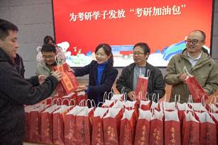 为传递地球学院的深切关怀与美好祝愿,王葆华主任、付伟副院长及温淑女老师等共同为学子们发放了精心准备的“考研加油包”。礼包中不仅包含实用学习用品,更有一份寓意“苦尽甘来”的“甜料”暖心礼,寄托着学院对学子们的美好祝愿。