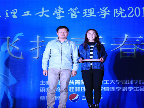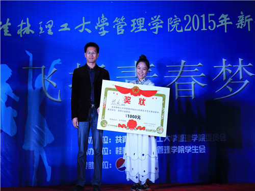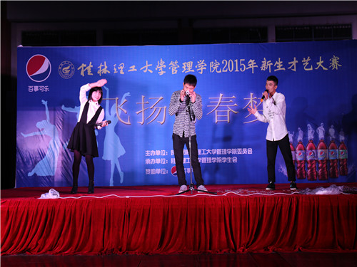 11月3日晚,管理学院2015年“飞扬青春梦”新生才艺大赛在雁山校区三栋广场举行。校学工部处副部处长冯广辉、理学院党委副书记孙巍、管理学院党委副书记张瑞以及各兄弟学院辅导员老师出席了本次比赛并担任评委,各兄弟学院的学生会主席以及15级全体新生一起观看了比赛。