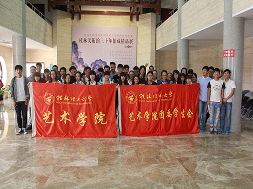 为丰富学院在校学生专业素养提升渠道与社会活动参与积极性,学院学生工作团队紧密结合自身学科特点并积极联系桂林市美术创作有关部门,2015年10月17日,学院团委组织在校学生参加“桂林美术馆馆藏精品30周年展”开幕、观展活动。