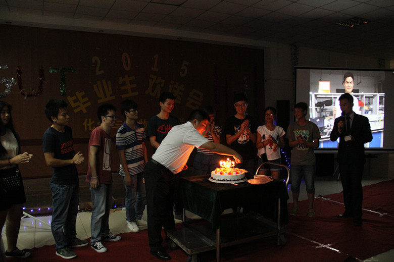 简短的致辞后,晚会正式开始,一个个精心编排的节目陆续上演,整场晚会节目形式多样、内容丰富。一首《梦里花》生动地展示了我们如花般美丽追梦的青春,是那样的绚丽多彩;歌曲《海阔天空》唱出了许多莘莘学子的心声与情感,引起了全场毕业生的共鸣;歌曲《清晰的记忆》,唤起了毕业生对大学四年的回忆,对班级同学的不舍。《毕业季——青春不散场》的视频播放,为同学们回忆四年的点滴,让在场的毕业生不禁潸然泪下。最后,杨建辉老师与在场的毕业生们一起为六月份生日的同学过生日,整个欢送现场充满着伤感的气息,杨老师说道: