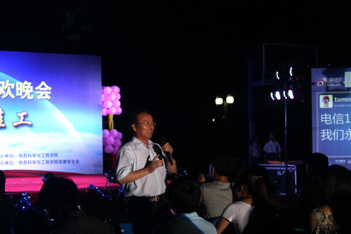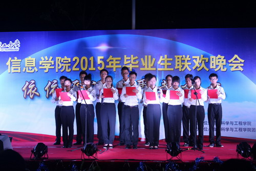 6月6日晚7点30分,信息学院“依依天涯,聚散桂工”2015年毕业生联欢晚会于2号组团篮球场举办。学院党委书记牛秦洲、院长程小辉、各专业老师、毕业班辅导员、班主任、2011级毕业生以及各年级学生观看了晚会。
