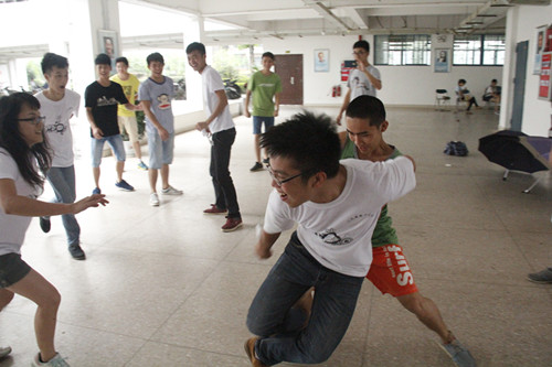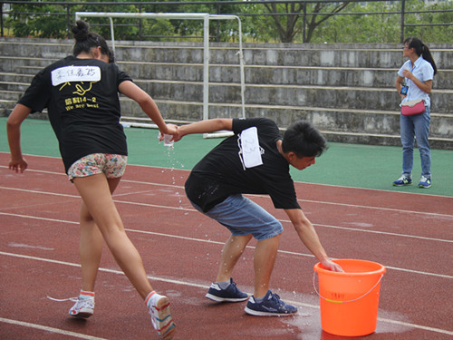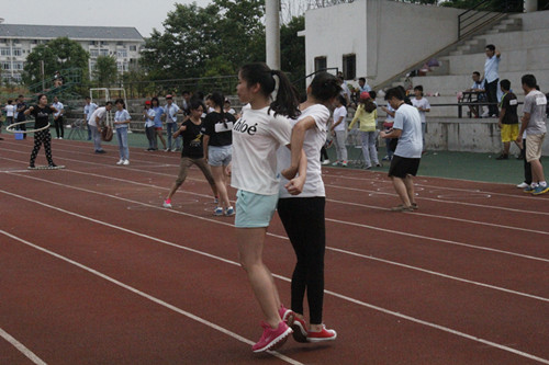 活动在胡老师简短的致辞后正式拉开帷幕。第一天在足球场首先进行的是指压板跳绳、背靠背运气球、单人转呼啦圈、跳单双圈接力、袋鼠弹跳、盛水接力等一系列小游戏,胜出的队伍直接晋级决赛。之后,剩下的八支参赛队伍两两分组,在足球场进行了一场激烈的撕名牌之战,现场气氛活泼激烈。第二天决赛在教五栋及教六栋进行,在进行各个楼层你追我赶激烈撕名牌的同时,还增加了听歌猜歌名,踢毽子以及看图猜成语等一系列趣味游戏,通过游戏参赛选手获得了复活、反射和提示等神秘“超能力”奖励。经过激烈比拼,13统计联队首先集齐了同种颜色“我爱理学院,我爱数理节”十个星星,获得本次比赛冠军,“爱烤鱼”自由组合联队紧追其后获得了亚军,14级信科联队获得季军。本次参赛选手努力拼搏所获得的公益基金将以获奖队伍的名义捐给附近农村小学。