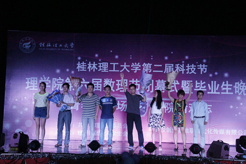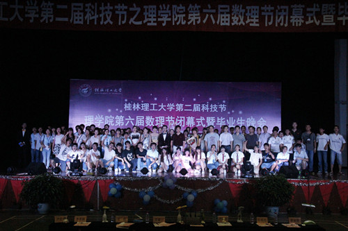 为营造理学院良好的学生活动文化氛围,理学院一年一度的文化盛宴——数理节闭幕式暨毕业生晚会于6月6日19:30在雁山校区体育馆隆重举行。此次晚会的主题为“青春不散场,理院情难忘”,活动邀请到了理学院院长吴群英,理学院党委书记陆平,学工处副处长张雷,理学院党委副书记郝文佳,学工处陈小波,材料学院孙巍、土建学院宋明霞、理学院院长助理蒋远营、理学院团委书记单江涛及学校和理学院多名老师等出席本次晚会。