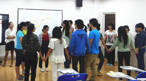此次培训会围绕六个主题展开,分别是:相识篇、沟通篇、化解篇、规则篇、团结篇和主题篇。在整场会议中,刘阳老师通过游戏来讲述班级心理活动对于学生的重要性:在“盲人旅行”小游戏中,大家认识到沟通至上;“心有千千结”游戏使同学们感受到化解矛盾的必要;“同舟共济”使大家了解到合作对学习、生活的帮助。最后,刘阳老师通过“无规矩不成方圆”的案例分析,让在场的心理委员了解如何将日常的行为守则结合本班的实际情况来开展心理团体辅导活动。