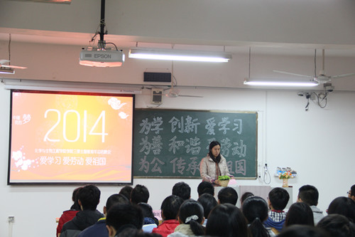 大会在2014年“三爱”主题教育活动总结视频中拉开序幕,视频全面总结了这一年里我院“三爱”主题教育活动及取得的一系列成果,随后院党委副书记陶剑飞老师就“三爱”主题教育年做总结讲话。讲话中,陶副书记全面总结了我院开展“三爱”主题教育以来所取得的一系列成果,并勉励全院学生在伟人毛泽东同志诞辰121周年之际,勇于向伟人学习,牢记青年的责任,不断开拓创新,将“三爱”教育内化于心,外化于行,固化于制。