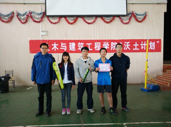 本次“沃土计划”——艺彩缤纷班级气排球比赛历时一个月,经过激烈角逐,土木(工民建)2014-1班以默契的配合和强大的啦啦队拔得头筹,工程管理2014-2班发挥稳定荣获第二名,第三名由工程管理2014-3班摘得,土木(工民建)2014-2班在本次比赛中获得了“最佳风采奖”,城乡规划2014-2班获得“优秀组织奖”。学院党委书记熊英、党委副书记冯广辉、2014级辅导员易姗姗、李顺安老师分别为获奖班级颁奖。最后熊书记号召同学们要继续发扬“阳光体育”精神,积极锻炼,强健体魄,以更饱满的精神投入每一天的学习生活中。
