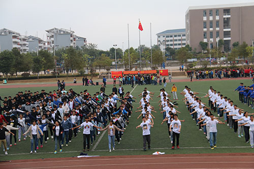 为了贯彻落实党的十八届三中全会关于“强化体育课和课外锻炼,促进青少年身心健康、体魄强健”的精神,积极响应共青团中央、教育部、国家体育总局和全国学联联合下发的《关于开展大学生“走下网络、走出宿舍、走向操场”主题群众性课外体育锻炼活动的通知》的号召,树立“健康第一、终身体育”的理念,营造阳光向上的校园文化氛围,材料科学与工程学院于2014年11月29日在雁山校区足球场开展了2014级全体学生 “我运动 我快乐”全员健身运动会。学院党委书记、14级卓越班班主任邹正光,辅导员孙巍、杨剑,全体班主任及班主任助理与2014级325名同学全程参加了本次运动会,共同体会运动的魅力 。