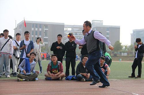 开幕式上,首先,各班组成方阵喊着个性的口号,挥舞着班旗整齐入场,随后,2014级艺术团的同学为大家呈现了精彩的啦啦操、鬼舞、B-box表演,最后,在全体师生的广播体操表演中,运动会拉开了帷幕。本次运动会将竞技与娱乐相结合,设有拔河、踢毽子、乒乓球接力、十人十一足、跳大绳、10X100折回接力跑、气排球等项目的比赛,由于运动会的趣味性和互动性,深受同学们欢迎,参与热度极高,体现了全员的参与和班级团队的合作,老师们的组队更是为运动会增添了亮丽的一笔。