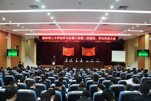 会议由化学与生物工程学院第一届团委组织部部长杨海丽主持,首先进行的是大会预备会,预备会上审议并通过了大会主席团、秘书长名单,大会的资格审查小组名单。下午14:30,大会正式会议在雄壮的国歌声中正式开始,化学与生物工程学院党委副书记陶剑飞老师为大会做了开幕词。陶剑飞副书记在讲话中充分肯定了四年来我院的共青团工作,体现了学院党委对我们的充分信任和高度重视,为今后共青团的发展提出了更高的要求。接着,校学生委员会副主席覃思同学代表校学生委员会对化学与生物工程学院团员代表大会暨学生代表大会的召开表示祝贺,并致祝贺词。