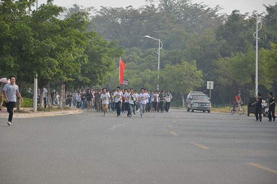 为贯彻落实党的十八届三中全会关于“强化体育课和课外锻炼,促进青少年身心健康、体魄强健”的精神,进一步增强学生身体素质,倡导学生积极“走下网络、走出宿舍、走上操场”。10月19日上午,信息科学与工程学院第一届阳光体育节在雁山校区二号篮球场开幕。此次阳光体育节以“我阳光我美丽,我运动我帅气”为活动主题。信息科学与工程学院党委书记牛秦洲教授,校团委副书记白凌婷老师、信息学院党委副书记李彦东老师、土建学院党委副书记冯广辉老师以及各学院领导、老师出席了本次开幕式。信息学院1000余名学生参加了开幕式。