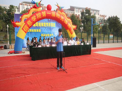 阳光体育节开幕式在伴着优美的校歌中拉开帷幕。首先由街舞队开场带来的精彩街舞表演,把现场活跃气氛迅速调动起来。接下来,信息学院党委书记牛秦洲教授为此次活动致开幕辞,他在致辞中指出:“世界是运动的,人的生命也是运动的,今天的阳光体育节体现了世界真理——运动。”他鼓励同学们积极参与运动,彰显青春活力。紧接着,学生代表董炳亮同学宣读了本次阳光体育节倡议书,传达了同学们运动的热情。校团委副书记白凌婷老师也为此次活动作了重要讲话,她认为本次阳光体育节的举办,充分实践了我校“每天运动一小时,幸福生活一辈子”的健康理念,发展体育运动,弘扬体育精神,对促进学校的发展和校园文化建设有着重要的意义。最后,牛秦洲书记宣布信息学院第一届阳光体育节正式开幕。在开幕式结束后便开始了本次阳光体育节的第一项活动——阳光环校跑。本次体育节共设活动赛事14大项,26余小项,将在10月19日至11月5日期间举行。