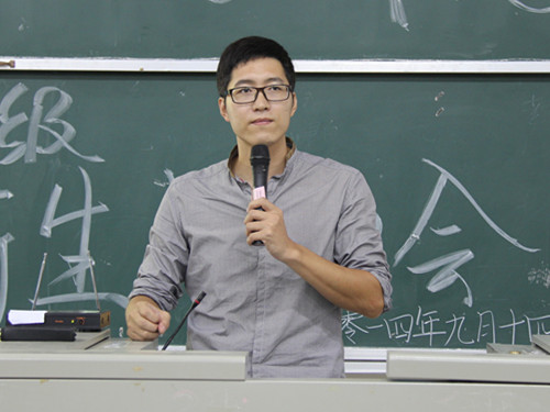 丹桂飘香,秋风送爽。在一整天迎接新生的忙碌之后,9月14日晚7时,理学院2014级新生启蒙教育会在惟实楼05314教室召开。理学院党委副书记郝文佳老师,理学院团委书记兼学工组长、14级辅导员单江涛老师出席见面会,与新生进行面对面交流。