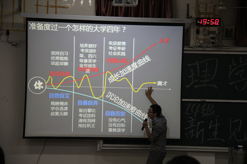 会议上,单江涛老师根据宿舍安全,外出安全,禁止到不明水域游泳,防盗防骗,人身财产安全等多个方面,列举了安全事故的危险性,提醒每一位同学要增强自我防范意识,提高自我保护能力。随后,理学院党委副书记郝文佳老师结合自身的大学经历,从大学时代的变迁、大学生所面临的形势、大学生活四拼图、大学生成长曲线等四个方面,为全体新生做出了具体的指导。他希望同学们能尽快适应大学生,正确树立自己的人生目标,合理规划自己大学四年。在发挥自己个性的同时也要注重学习、工作、娱乐的相结合,做一名全面发展的优秀大学生。