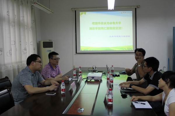 2014年6月18日下午,华北水利水电大学建筑学院党委副书记康长春、学工办主任严海蒙一行2人到土木与建筑工程学院交流学生工作经验。土木与建筑工程学院党委副书记冯广辉代表学院对来访客人表示热烈欢迎,学院团委书记唐丽华、学院城规教研室副主任孙昌盛及专业老师刘声炜参加了交流会。
