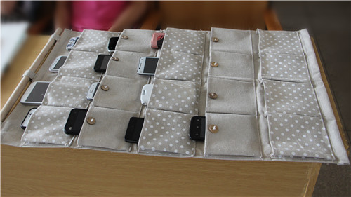 在前期向全院同学提出倡议和部分班级试点后,我院同学均对此项活动有了认识和了解,并用实际行动予以支持。6月9日上午,广告学专业13级学生在上课前,班长将手机收纳袋放于第一排座位上,班干带头将手机放入收纳袋中,其他同学也自觉地把手机调为震动或静音状态,纷纷将手机放进了收纳袋中,拒绝做“低头族”。下午,行政管理13级的专业课上,手机收纳袋摆在第一排座位上,大家都集中精力认真听课。
