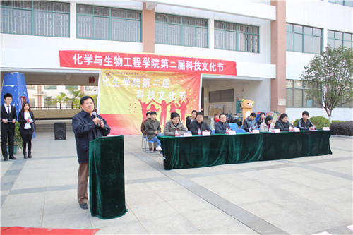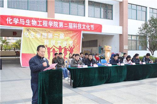 科技时代,创新化生。12月19日下午,化生学院第二届科技文化节开幕式暨“蛋蛋的忧伤”广场活动在雁山校区三栋广场隆重举行。学院党委书记胡祖生、党委副书记陶剑飞、副院长杨建文、各级辅导员及各兄弟学院团委学生会主席作为嘉宾与500多名学生一同参加了开幕式。