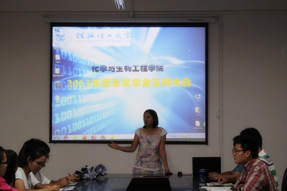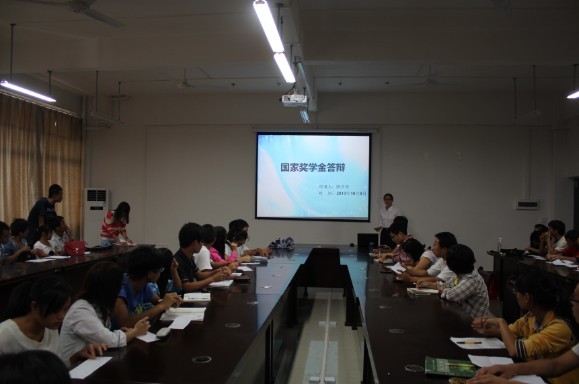 为了充分体现国家奖学金评选工作的公正公开公平原则,给学生提供一个展现自我、互相交流的平台,化生学院于10月8日中午在12209 会议室举行2012-2013学年度国家奖学金答辩会。学院党委副书记陶剑飞与各年级辅导员担任嘉宾,各班级同学代表一起参加了答辩会并担任大众评委。