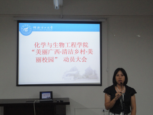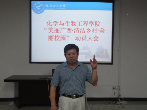 为了积极响应“美丽广西·清洁乡村·美丽校园”活动号召精神,化生学院于7月2日在雁山校区12209会议室召开了“美丽广西·清洁乡村·美丽校园”动员大会。学院党委书记胡祖生、党委副书记陶剑飞、团委书记周德海、11级辅导员杨建辉老师、12级辅导员何宗辉老师、各班级班长、团支书以及学院“化爱为生”爱心公益协会全体成员参加了此次动员大会。